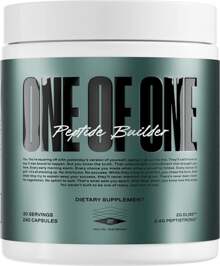 ONE OF ONE Peptide Builder is on the cutting edge of muscle-building and recovery. Powered by PeptiStrong and DL185 to drive bigger gains in the gym and on the field, it fights lean muscle loss 54% better than milk protein and reduces muscle-atrophy inflammation by 60%. Serious science for serious strength.