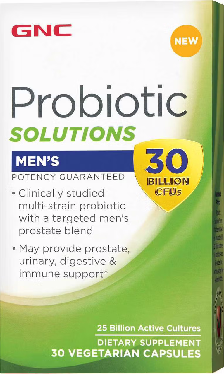 GNC - Probiotic Solutions Men’s Supplement: Provides Prostate, Urinary, Digestive and Immune Support - 30 Billion CFUs - 30 Vegetarian Capsules GNC Probiotic Solutions for Men 30 Billion CFUs...