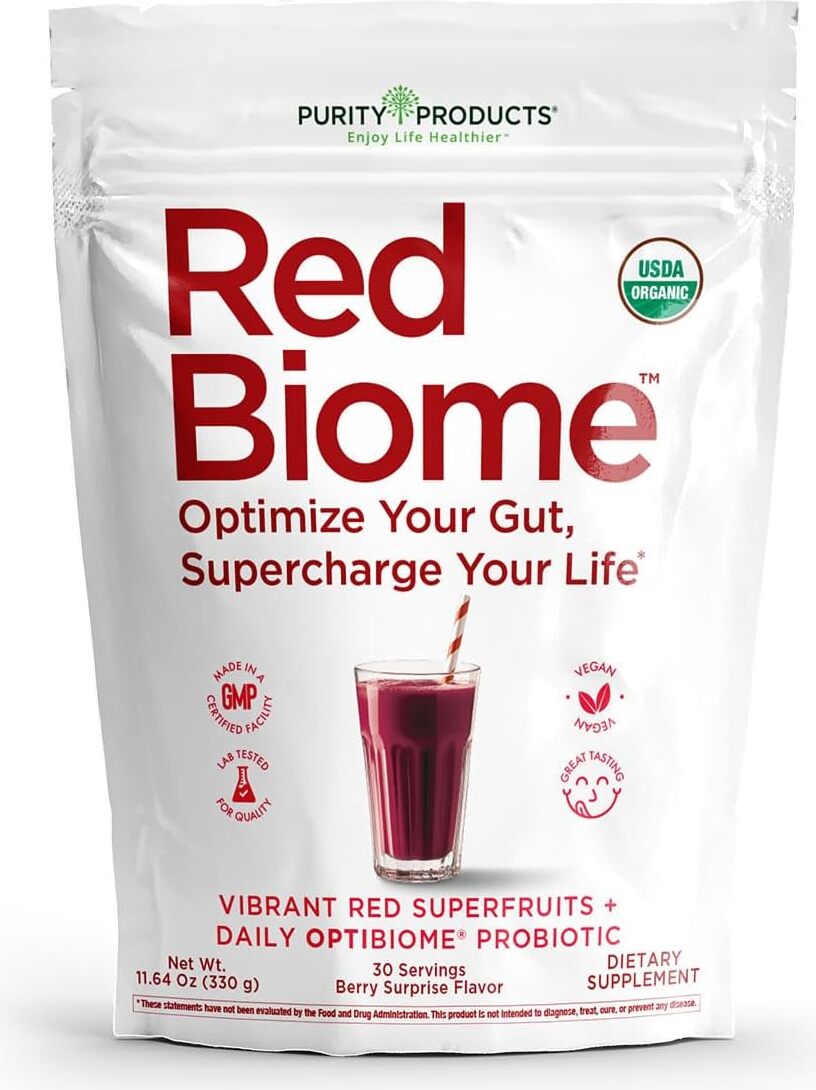 - CLINICALLY STUDIED PROBIOTIC FOR GUT HEALTH: Red Biome features OPTIBIOME, a high-performance, patented probiotic clinically studied to support digestive balance and reduce occasional bloating, gas, and burping — helping you feel lighter and more comfortable.*