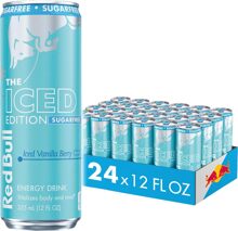 - Enjoy the taste of Blueberry, Vanilla, and icy-fresh notes of eucalyptus in the Red Bull Iced Edition; Red Bull's premium energy blend includes caffeine, the amino acid taurine & four essential B vitamins (B3, B6, B12 and B5), which contribute to normal energy-yielding metabolism.
