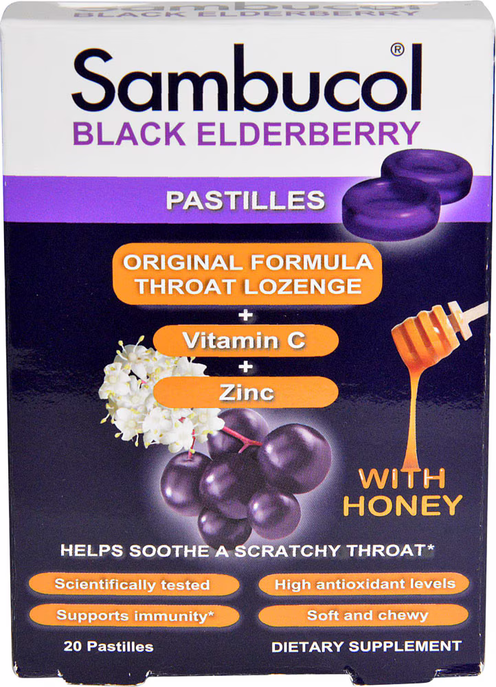 Go to StoreSambucol Black Elderberry Pastilles with Honey Description