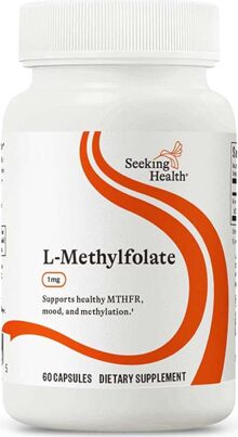 Seeking Health’s L-methylfolate contains 1,700 mcg DFE of methylfolate in the bioavailable form of L-5-methyltetrahydrofolate (L-5-MTHF).