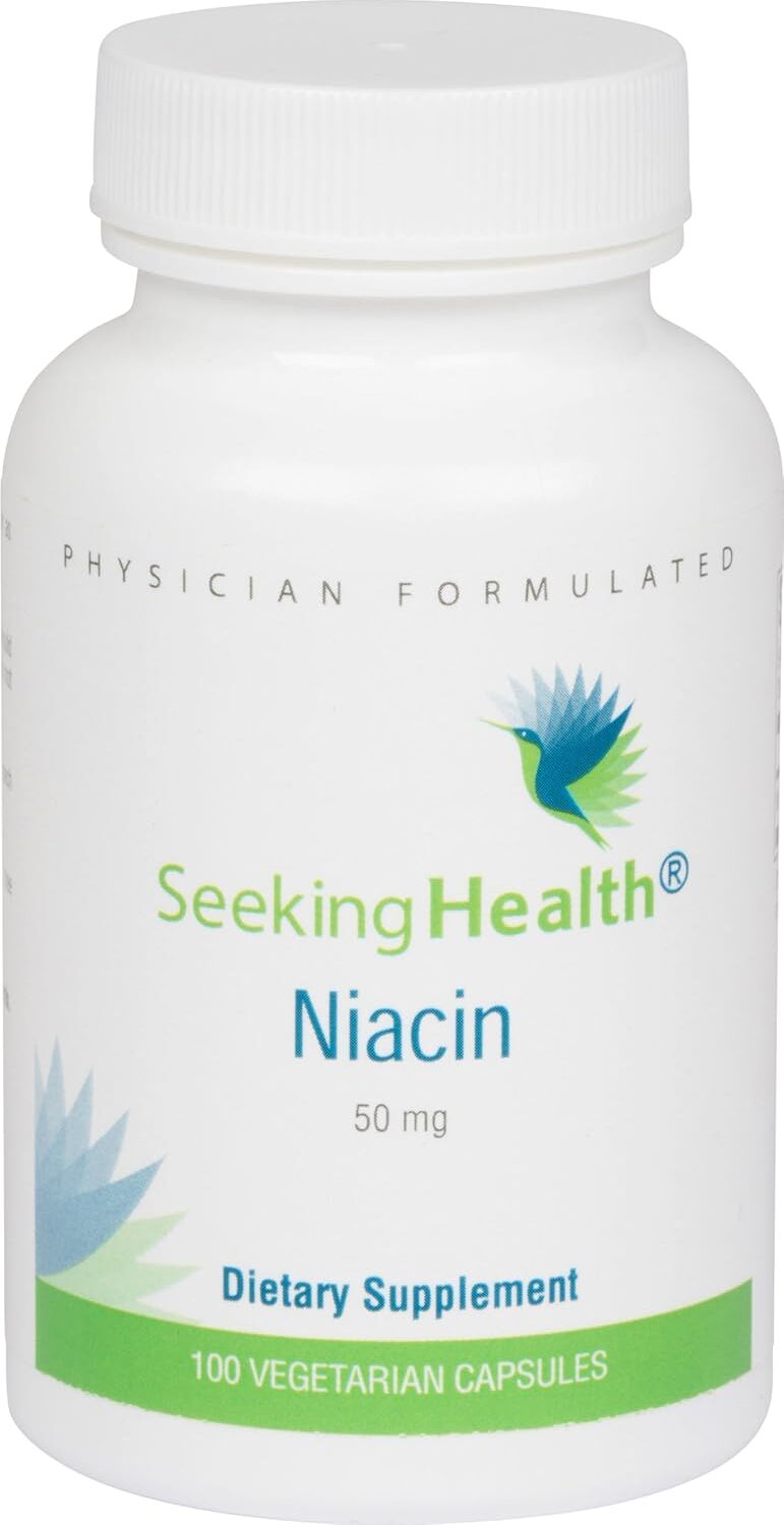 Niacin capsules by Seeking Health provide niacin as nicotinic acid. This pure form of niacin, unlike other forms (e.g., niacinamide or inositol hexanicotinate), has powerful benefits for cardiovascular health. Each convenient capsule contains 50 mg NE (niacin equivalents) of niacin, also known as vitamin B3.