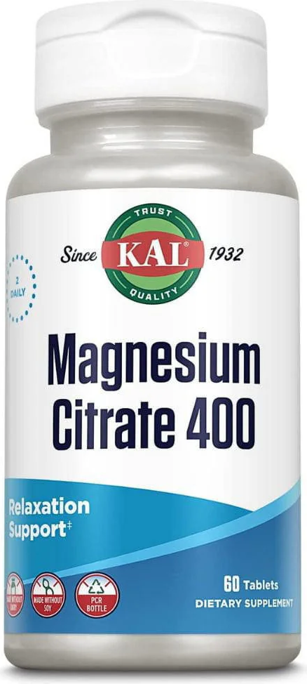 Magnesium Citrate 400 Description from KAL Magnesium supports healthy muscle function, nerve support, and relaxation.ActivTab technology guarantees tablet disintegration within 30 minutes...