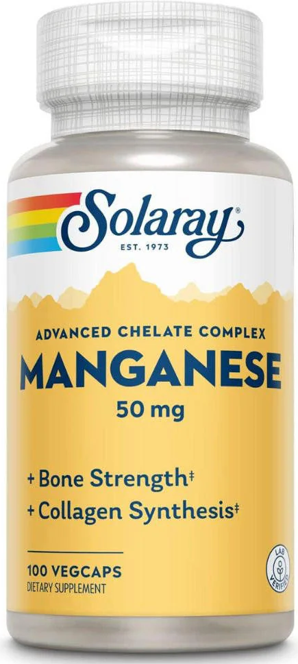Manganese (50mg) Description from Solaray Manganese is an essential mineral that helps support collagen synthesis and bone health. The Manganese in this product is reacted with aspartic acid,...