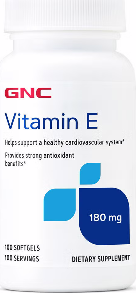 GNC - Vitamin E 180mg- 100 Softgels A strong antioxidant, Vitamin E supports a healthy cardiovascular system! Every one-softgel serving provides 180MG of vitamin E. This formula is free of gluten,...