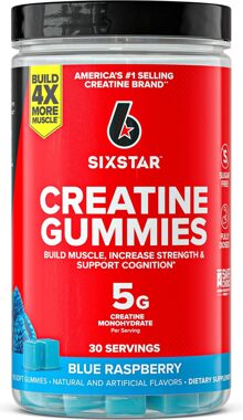 - Power Up Your Routine: SIXSTAR Creatine Gummies are tasty, convenient creatine monohydrate gummies to help you build muscle, increase strength, and support cognition. Blue Raspberry Flavor. 30 servings per tub.