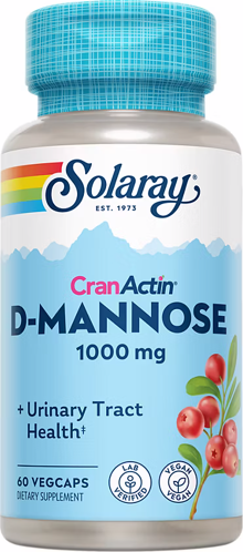Solaray D-Mannose with Cran-Actin is a powerful one-two punch to help restore comfortable and healthy urinary tract function. Most people are familiar with cranberry extract's benefits for the urinary tract. D-mannose is a natural and harmless pentose sugar that's less well-known but just as effective as cranberry, if not more so. Both work by inhibiting the ability of bacteria to adhere to the inner surfaces of the urinary tract and avoid being eliminated. Since both D-mannose and Cran-Actin cranberry extract are reliable and effective ways to promote urinary tract health, many users employ both nutrients, but until now that's meant buying and using two separate products. With Solaray D-Mannose with Cran-Actin, you get the two most-effective urinary tract nutrients in just on one highly effective product.