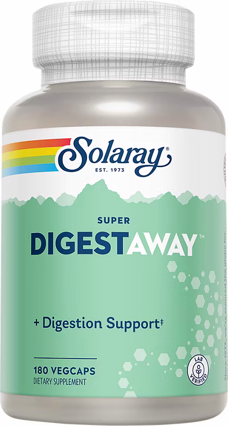 Solaray Super Digestaway is a unique formula containing enzymes essential to the digestion and absorption of proteins, fats and carbohydrates.