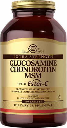 Solgar Extra Strength Glucosamine Chondroitin MSM with Ester-C Tablets is ideal for anyone seeking extra-nutritional support for their cartilage and joints. This formula is specially designed to nourish your joints and cartilage, bring fluid into the joints and helps maintain flexibility, mobility and comfortable movement. This formula also contains Ester-C to support joint health by helping to maintain enzymes necessary for collagen formation in their active state.