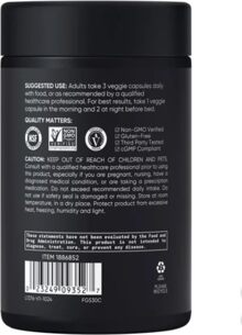Suggested Use: Adults take 3 veggie capsules daily with food, or as recommended by a qualified healthcare professional. Free Of GMOs, gluten, and animal ingredients.