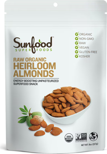 Go to StoreSunFood Raw Organic Heirloom Almonds Description
