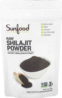 Shilajit's origin lies in the ancient organic plant material preserved in the dark crevices of the Himalayan Mountains. As the sun warms up the mountain and melts the snow, a soft, heavy resin seeps out and is collected by local farmers. This thick resin is then dried and ground into a fine powder known as shilajit, meaning "rock-invincible" in Sanskrit. It has a natural smoky flavor and is high in iron with important nutrients like fulvic acid, calcium, selenium and magnesium.