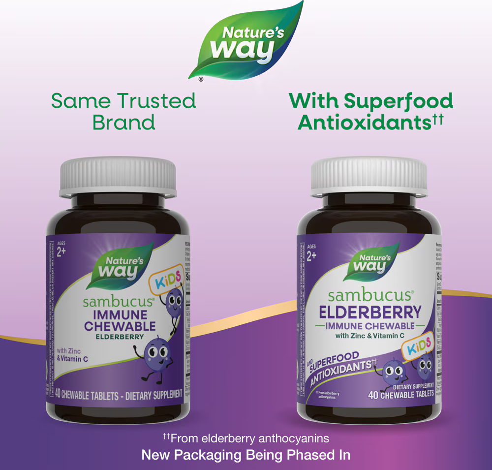 Nature's Way Products Available at Nature's Way Kids Sambucus Elderberry Relief + Immune Support Description Sambucus Relief For Kids Ages 2+ With Clinically Proven South African Geranium Feel...