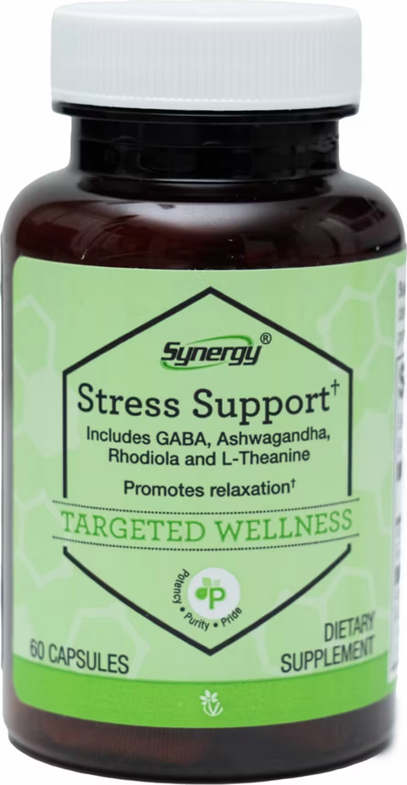 -Synergy Stress Support Description Promotes relaxation and reduces stress.* Synergy Targeted Wellness: Advanced, all-in-one formulas featuring key ingredients to address specific health concerns...