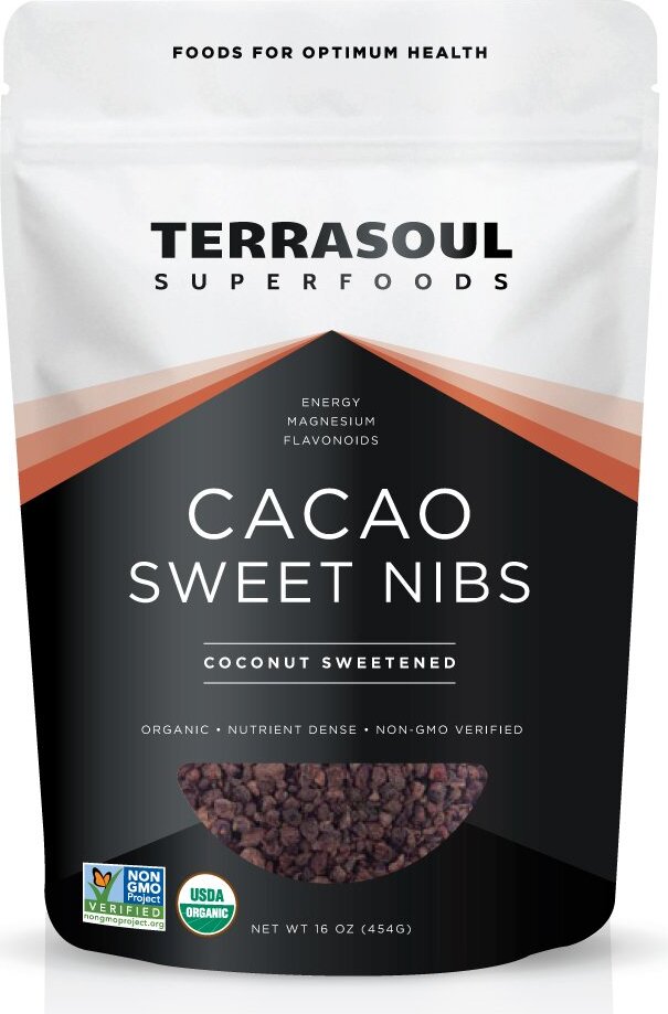 About this item Terrasoul Superfoods Organic Sweet Cacao Nibs, 16 Ounces USDA Certified Organic, Earth Kosher, Non-GMO, Gluten-Free, Vegan Our sweet nibs are made from Criollo variety Peruvian...