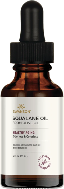 Did you know that about 15% of the fats and oils that keep your skin healthy and supple are actually in the form of squalane? It's true in our teenage years, but as we age we lose it at a remarkable rate. This is one of the contributing factors to the premature signs of aging. Now you can replace what time takes away with Swanson Premium Vegan Squalane Oil from Olive Oil. A botanical alternative to shark oil-derived squalane products, our Squalane Oil is an odorless, colorless serum. Use it directly on troubled areas, or add it to your favorite facial or hand cream for ultra-moisturizing, super-softening skin care.
