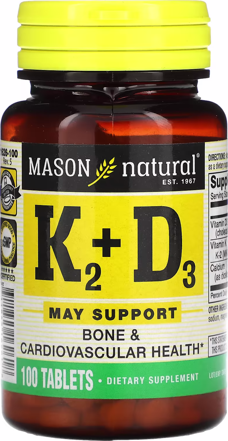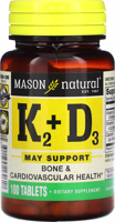 Mason Natural Vitamin K2 Plus Vitamin D3 Description Vitamin K2 100 mcg Plus Vitamin D3 May Support Bone Health How could fats be important for bone health, you might ask? It turns out that...