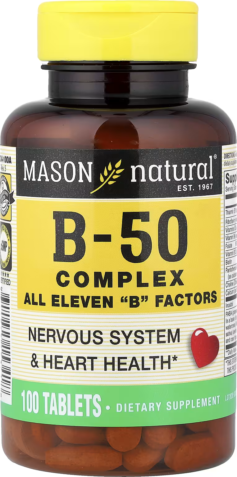 Mason Natural Vitamin B-Complex Support Nervous System and Heart Health Description Nervous System & Heart Health Gluten Free Soy Free Mason Natural B-Complex with C capsules deliver a complete...