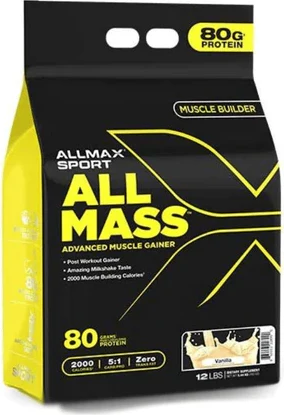 ADVANCED MUSCLE GAINER Introducing ALLMAX SPORT ALLMASS Advanced Muscle Builder. Our Advanced Muscle Builder mixes instantly in ice-cold water or...