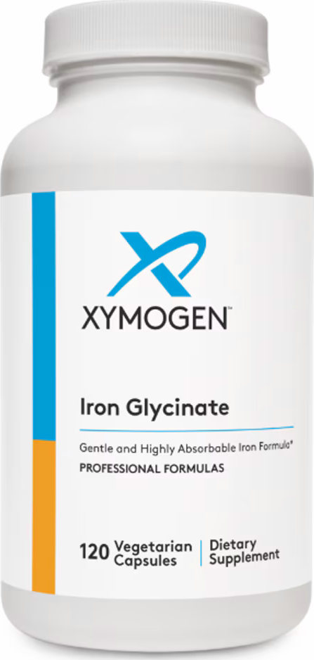 XYMOGEN Iron Glycinate Description Gentle and Highly Absorbable Iron Formula 29 mg Iron as Ferrochel Ferrous Bisglycinate Chelate Supplements Inadequate Dietary Iron Intake Supports Your Body’s...