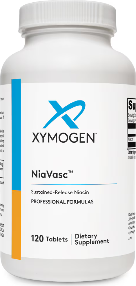 XYMOGEN NiaVasc 750 Description Sustained-Release Niacin Supports the Maintenance of Healthy Blood Lipids Supports Normal Carotid Intima-Media Thickness (CIMT) Professional Formulas Niacin is one...